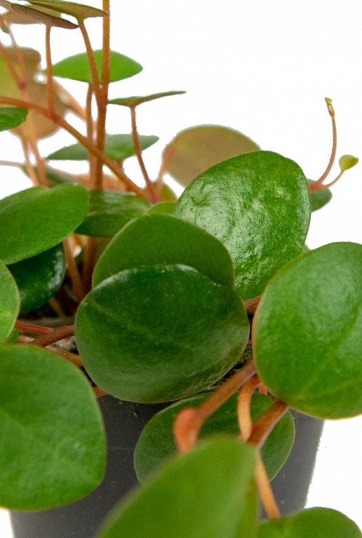 Dit Peperomia Pepperspot stekje heeft een bijzonder uiterlijk met zijn ronde groene blaadjes en roodbruine steeltjes. Het stekje behoort tot de hangplant en staat graag op een lichte plek.