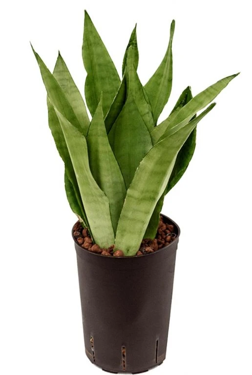 De Sansevieria op hydrocultuur staat bekend om zijn groen gekleurde en puntige harde bladeren. Het is een plantensoort die weinig water verbruikt en daarom makkelijk te onderhouden is. In Nederland staan deze kamerplanten beter bekend als de Vrouwentong.